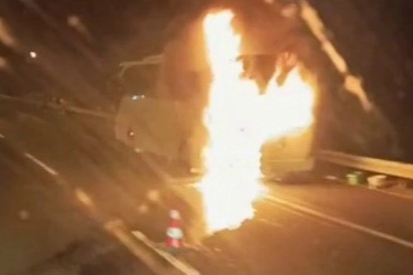 Gebze-Orhangazi-İzmir Otoyolu Orhangazi Tüneli yakınlarında meydana gelen otobüs yangınında Çanakkale'nin Lapseki ilçesinden İstanbul'a geziye giden öğrencileri taşıyan otobüs motor bölümünden alev aldı.