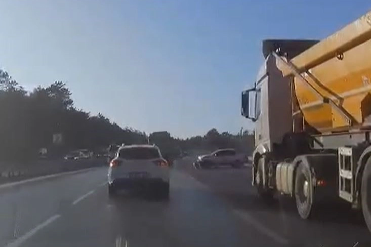 Kazada şans eseri yaralanan olmazken, o anlar başka bir aracın araç kamerası tarafından saniye saniye kaydedildi.