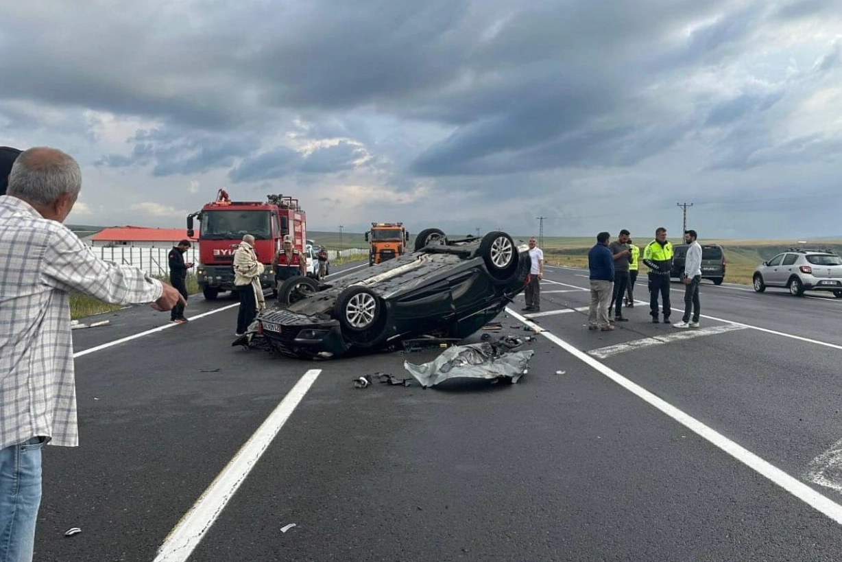 Kars’ta kamyona çarpan otomobil takla attı. Feci kazada 2 kişi yaralandı.