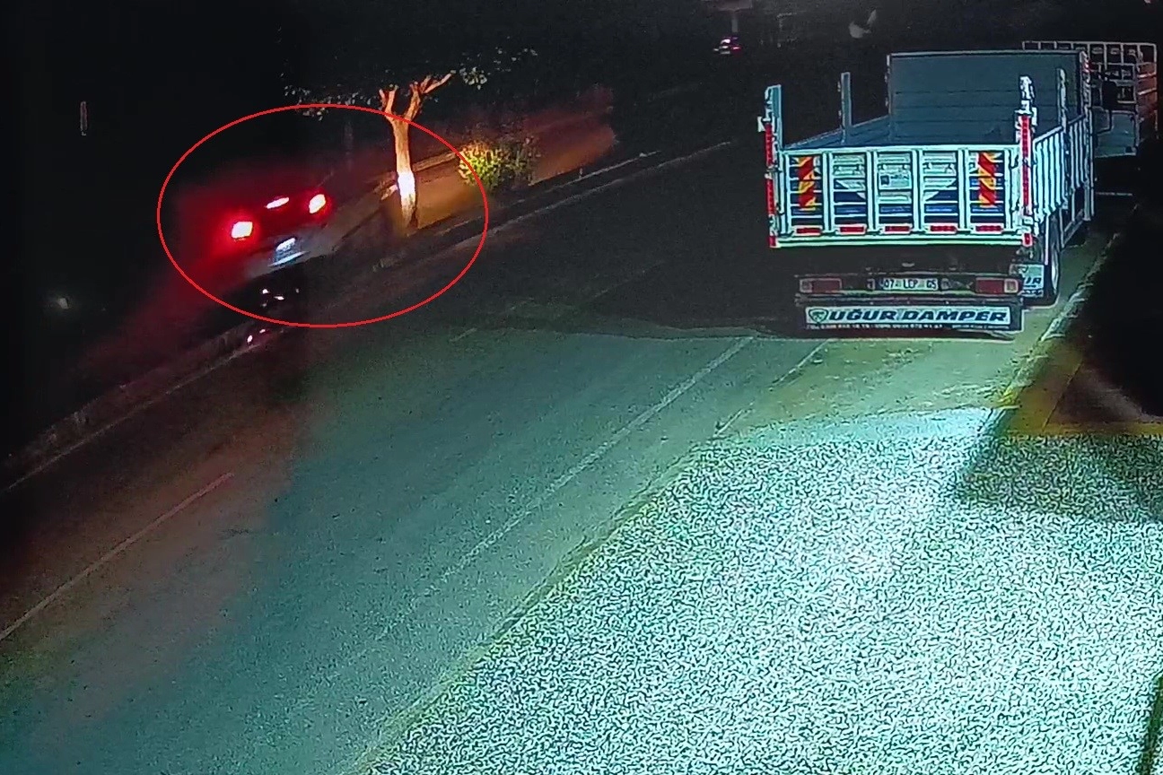 Kaza anı anbean güvenlik kamerasına yansıdı. Kaza, Manavgat ilçesi Sarılar Mahallesi Cumhuriyet Caddesi üzerinde meydana geldi. Edinilen bilgiye göre, Çakal Deresi'nden Sarılar yönüne seyreden Ulaş Y.'nin kullandığı 07 ABT 423 plakalı otomobil, kontrolden çıkarak önce refüje ardından da ağaca çarptı.