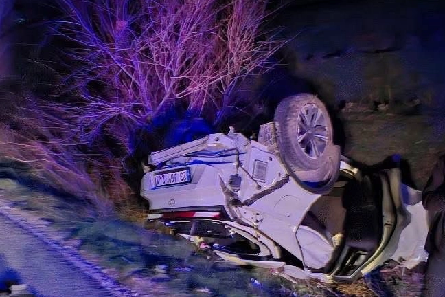 Elazığ’da sürücüsünün direksiyon hakimiyetini kaybettiği otomobil takla attı.