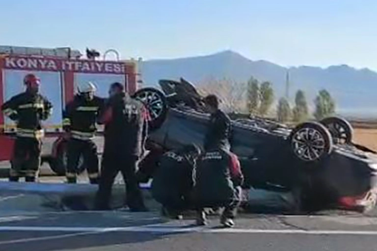 Konya'nın Seydişehir ilçesinde otomobilin takla atması sonucu 1'i çocuk 3 kişi yaralandı.