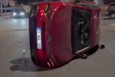 Diyarbakır'da sürücüsünün direksiyon hakimiyetini kaybettiği otomobil takla attı.
