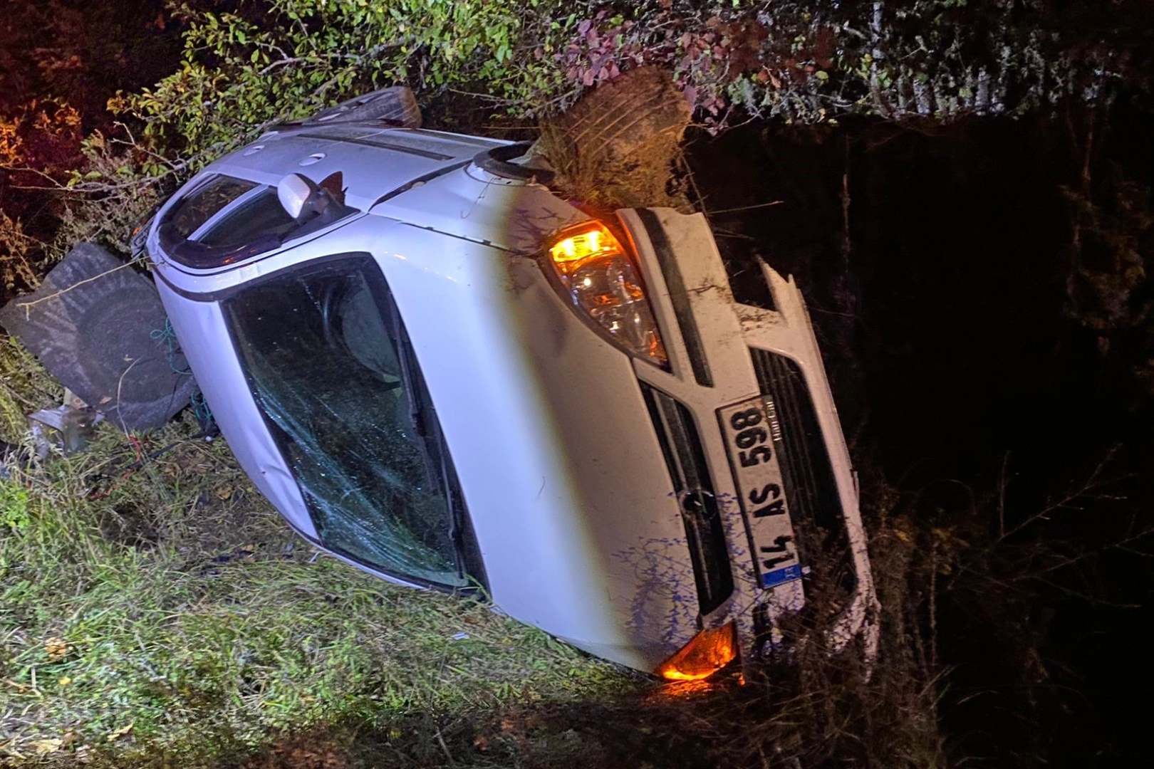 Bolu-Abant kara yolunda kontrolden çıkan bir otomobil takla attı.