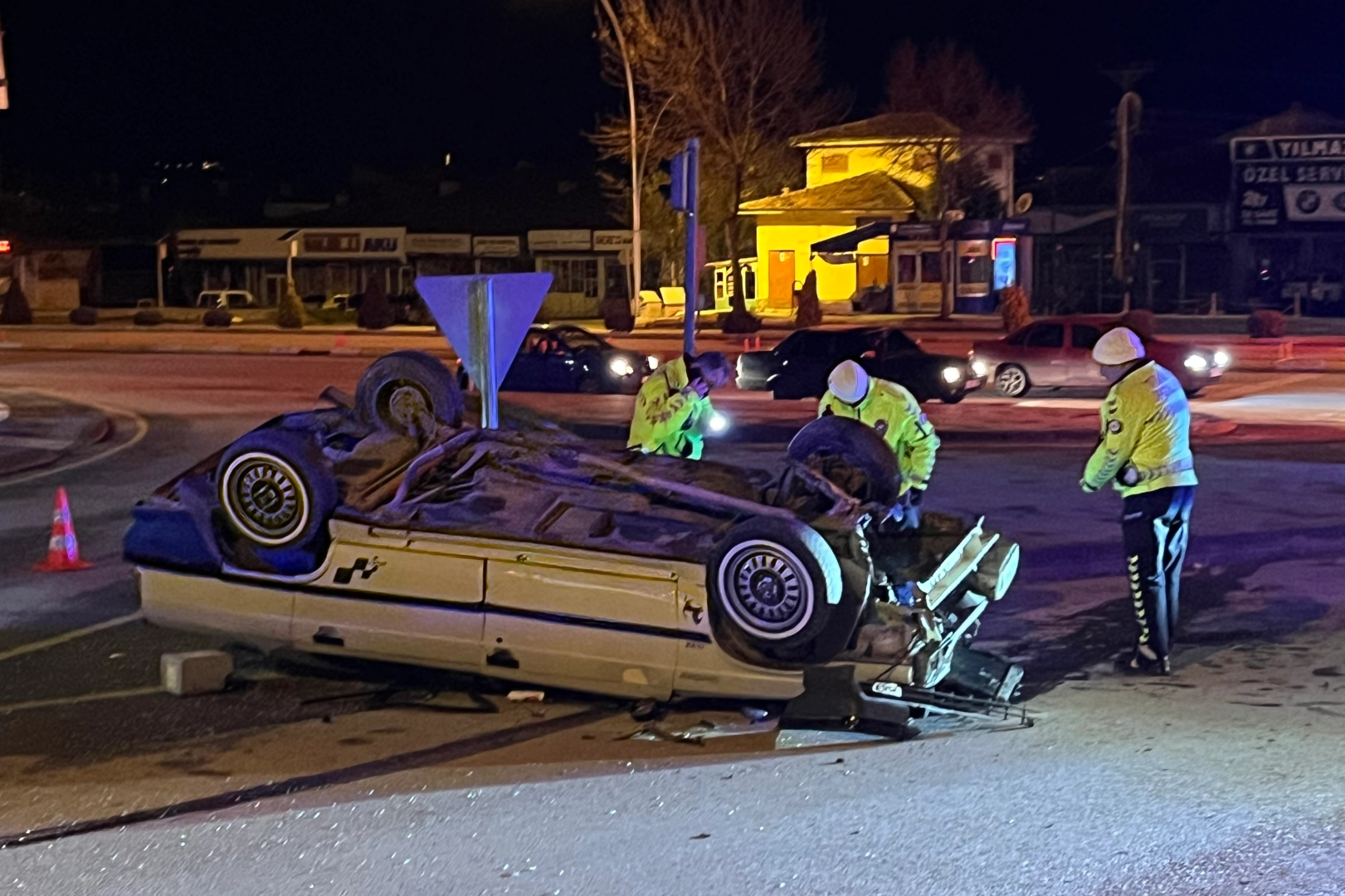 Çorum'da otomobilin kavşakta takla atması neticesinde sürücüsü yaralandı.