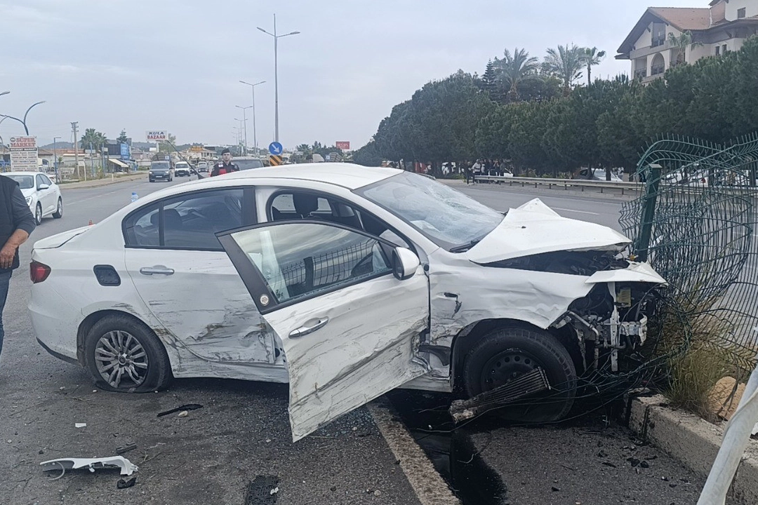 Güvenlik kamerası görüntülerine yansıyan kazada otomobil hurdaya dönerken, yaralanan otomobil sürücüsü ile diğer araçta fenalaşan yaşlı kadın hastaneye kaldırıldı. Kaza, Alanya-Manavgat D-400 Karayolunda meydana geldi.