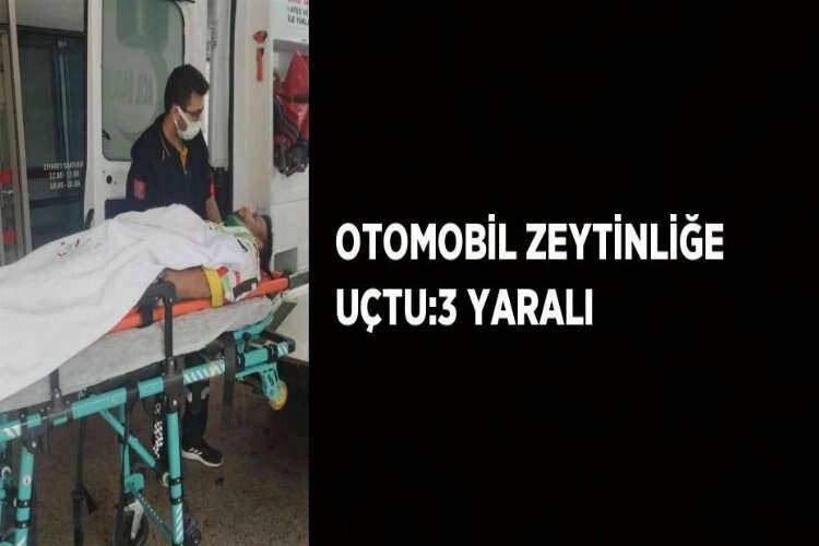 Orhangazi-İznik Karayolu Üreğil Kavşağı yakınlarında kontrolden çıkarak zeytinliğe uçan otomobil, motor kısmından alev aldı.