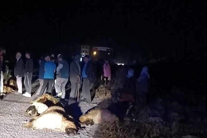 Erzincan-Erzurum kara yolunda otomobilin çarptığı 23 koyun telef oldu.