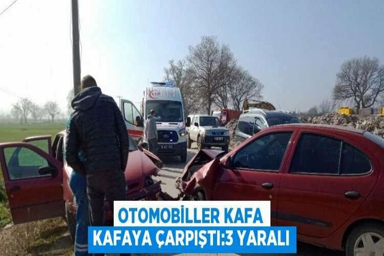 Bursa’nın Mustafakemalpaşa ilçesinde kafa kafaya çarpışan otomobillerdeki 3 kişi yaralandı.