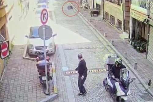 O esnada balkona çıkan şahıs dengesini kaybederek beton zemine düştü. O anlar kameraya yansıdı. Olay, saat 10.30'da Fatih ilçesi Akşemsettin Mahallesi'nde meydana geldi. Edinilen bilgiye göre cezaevinden izinli çıkan M.K., isimli şahıs ailesinin yaşadığı eve geldi. Burada kendini ateşe veren M.K., kaldığı dairenin penceresinden dengesini kaybederek aşağıya düştü. M.K.'nın düştüğünü görenler, durumu polis, itfaiye ve sağlık ekiplerine haber verdi. İhbar üzerine olay yerine gelen sağlık ekipleri, M.K.'yı ambulansla hastaneye götürdü. İtfaiye ekiplerinin yaptıkları çalışmalar sonrası evdeki yangın tamamen söndürülürken, yangın esnasında M.K.'nın camdan düştüğü anlar güvenlik kamerasına yansıdı.