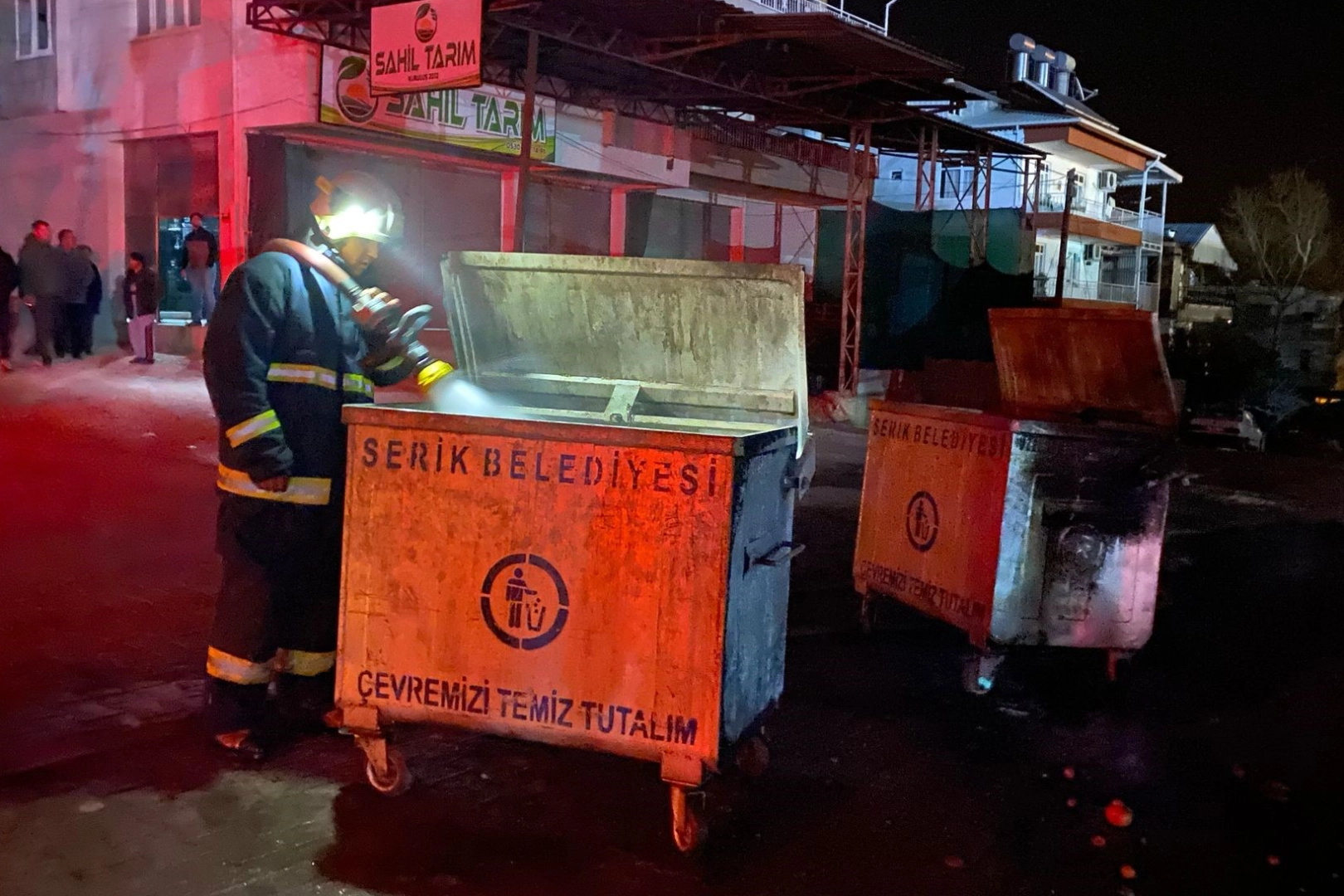 Antalya'nın Serik ilçesinde kimliği belirsiz bir şüpheli, çöp konteynerinden aldığı kartonu ateşe vererek plastik kasaları tutuşturdu ve iş yerini kundakladı.