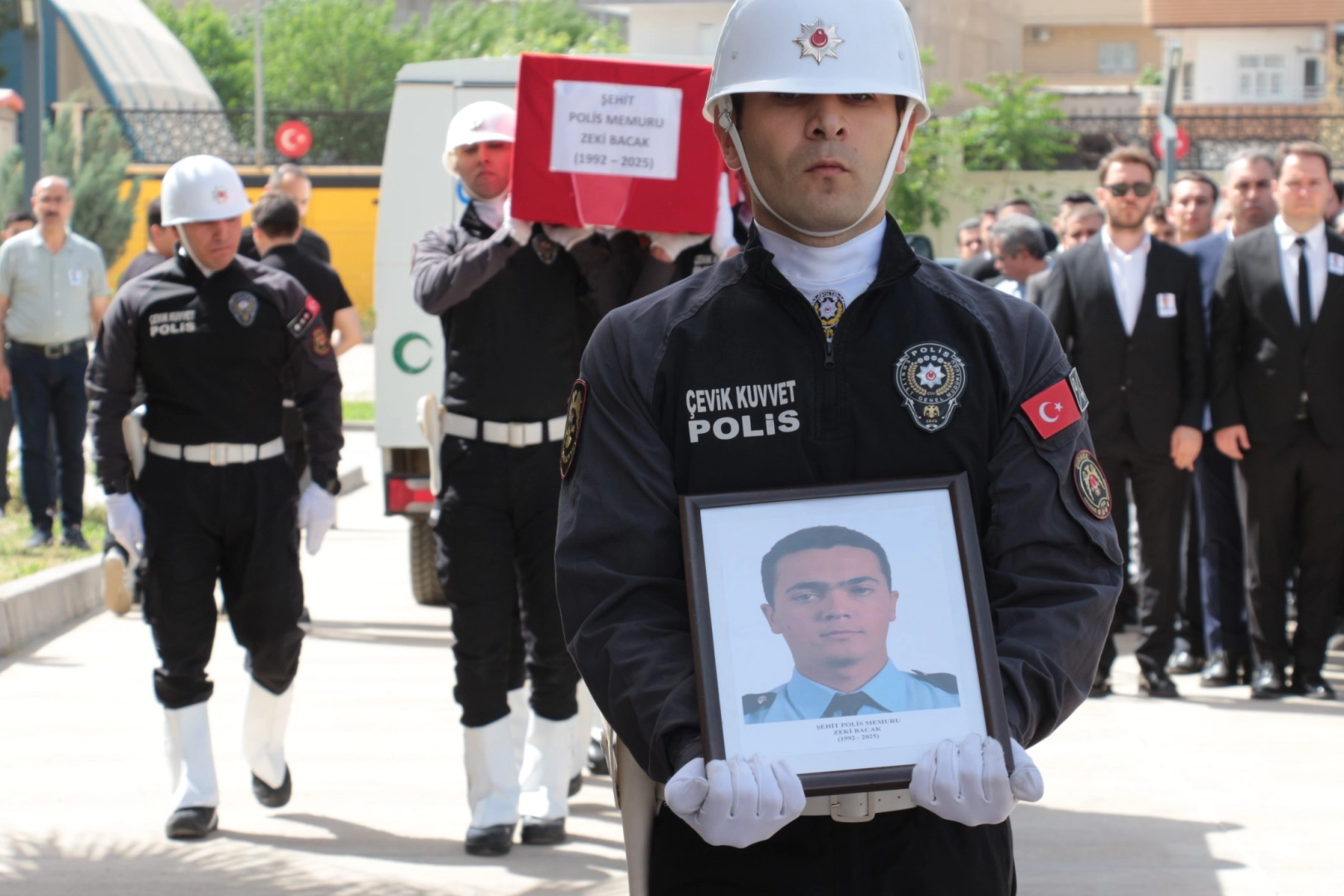 Cizre’de, 20 Nisan 2025 tarihinde trafik kazasına müdahale etmek üzere görevlendirilen polis memuru yoldan geçen bir tırın çarpması sonucu ağır yaralanmış ve Cizre Devlet Hastanesinde tedavi altına alınmıştı. 4 günden bu yana yoğun bakımda yaşam mücadelesi veren trafik polisi Zeki Bacak, dün tüm müdahalelere rağmen hayatını kaybetti. İlçe Emniyet Müdürlüğü bahçesinde düzenlenen törende, şehidin Türk bayrağına sarılı tabutu alana getirilerek katafalka konuldu, saygı duruşunda bulunuldu, öz geçmişi okundu. Törene Şırnak Valisi Birol Ekici, Cizre Kaymakamı Ahmet Vezir Baycar, Silopi Kaymakamı Cihat Koç, İl Emniyet Müdürü Serdar Büyükleblebici, İlçe Emniyet Müdürü Ayhan Elmalı, şehidin babası Kamil, annesi Emine, eşi Betül, kızı Zeynep Erva Bacak, kanaat önderleri, iş adamları, STK temsilcileri, polis memurları ve vatandaşlar katıldı.