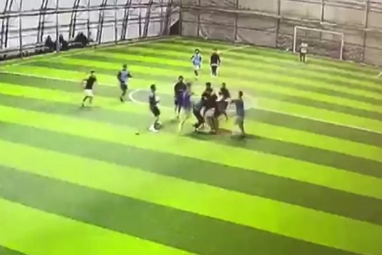 Burdur'da halı saha maçı esnasında çıkan kavgada 1 kişi hastanelik olurken o anlar güvenlik kamerasına yansıdı.