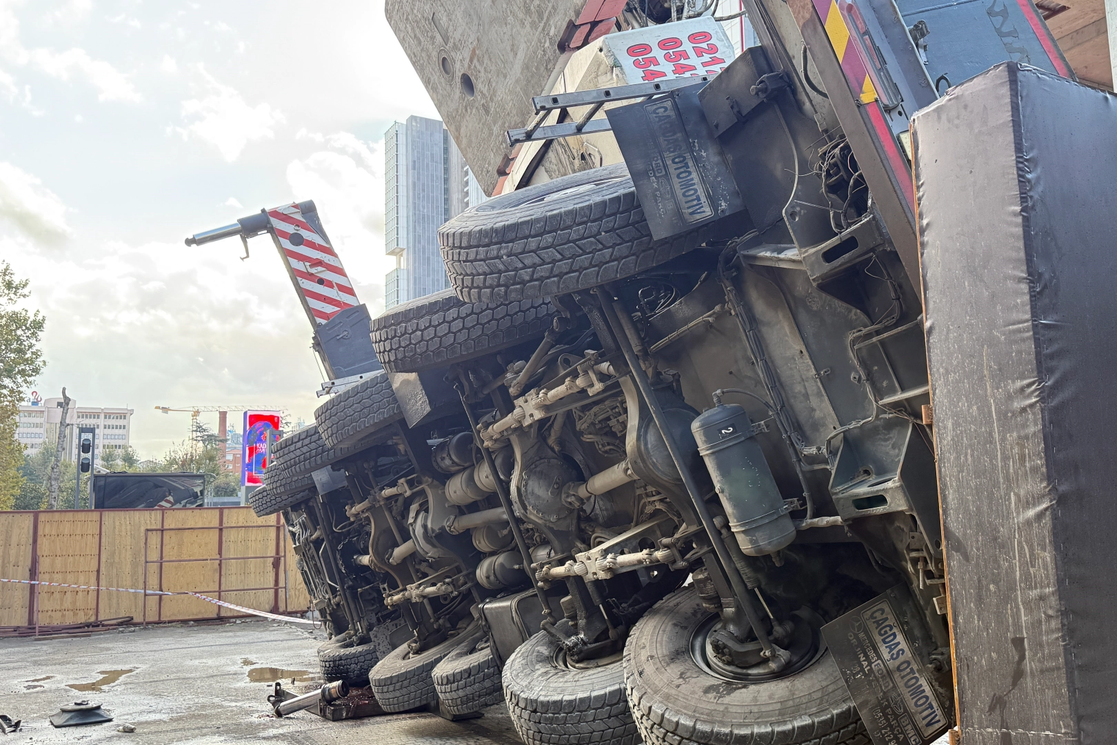 Kamyon şoförü kazandan kıl payı kurtuldu Vincin devrildiği anlar çevrede bulunan bir iş yerinin güvenlik kamerasına yansıdı. Görüntülerde, beyaz Mercedes marka kamyonun geçmesinden saniyeler sonra vincin devrildiği anlar yer alıyor.