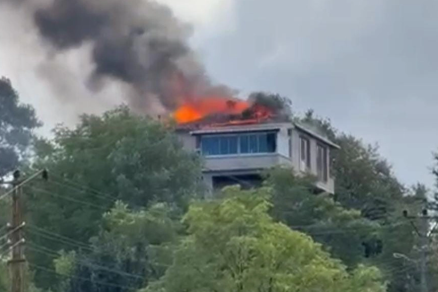 Rize’nin Pazar ilçesinde çıkan yangında bir evin çatısı küle döndü.