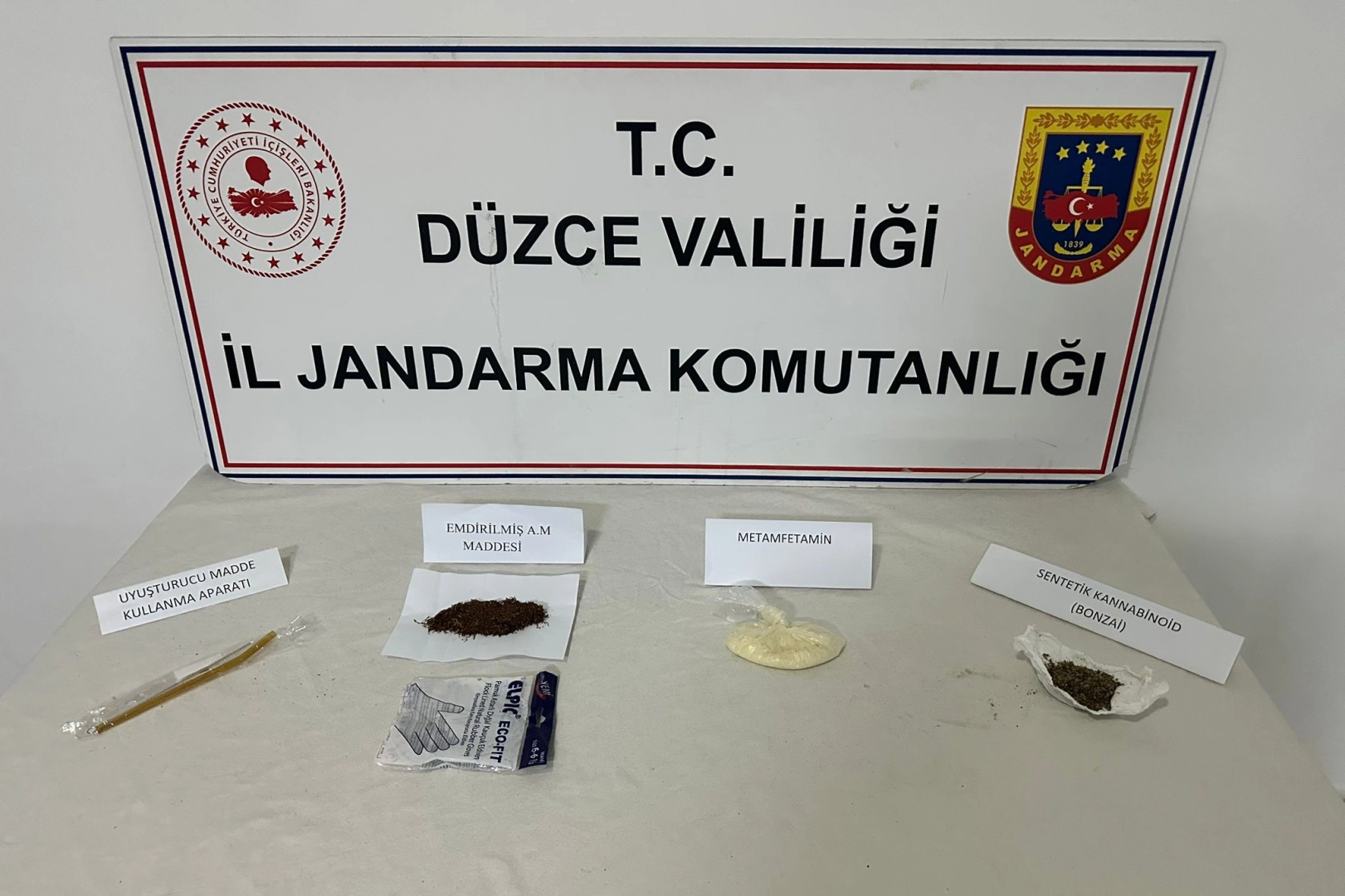 Düzce Cumhuriyet Başsavcılığı koordinesinde Jandarma ekipleri tarafından uyuşturucu ile mücadele sürüyor. Ekipler, E.S.(41) isimli şahsın uyuşturucu madde sattığı ve Sakarya'dan Düzce'ye uyuşturucu madde getireceği duyumu üzerine harekete geçti. Sakarya plakalı araç ekipler tarafından durdurulduğu sırada elinde bulunan çanta ile kaçmaya çalışan E.S. yere düşürdüğü çantayı vermemek ve kaçmak için görevli memurlara mukavemette bulunmasına rağmen yakalandı.