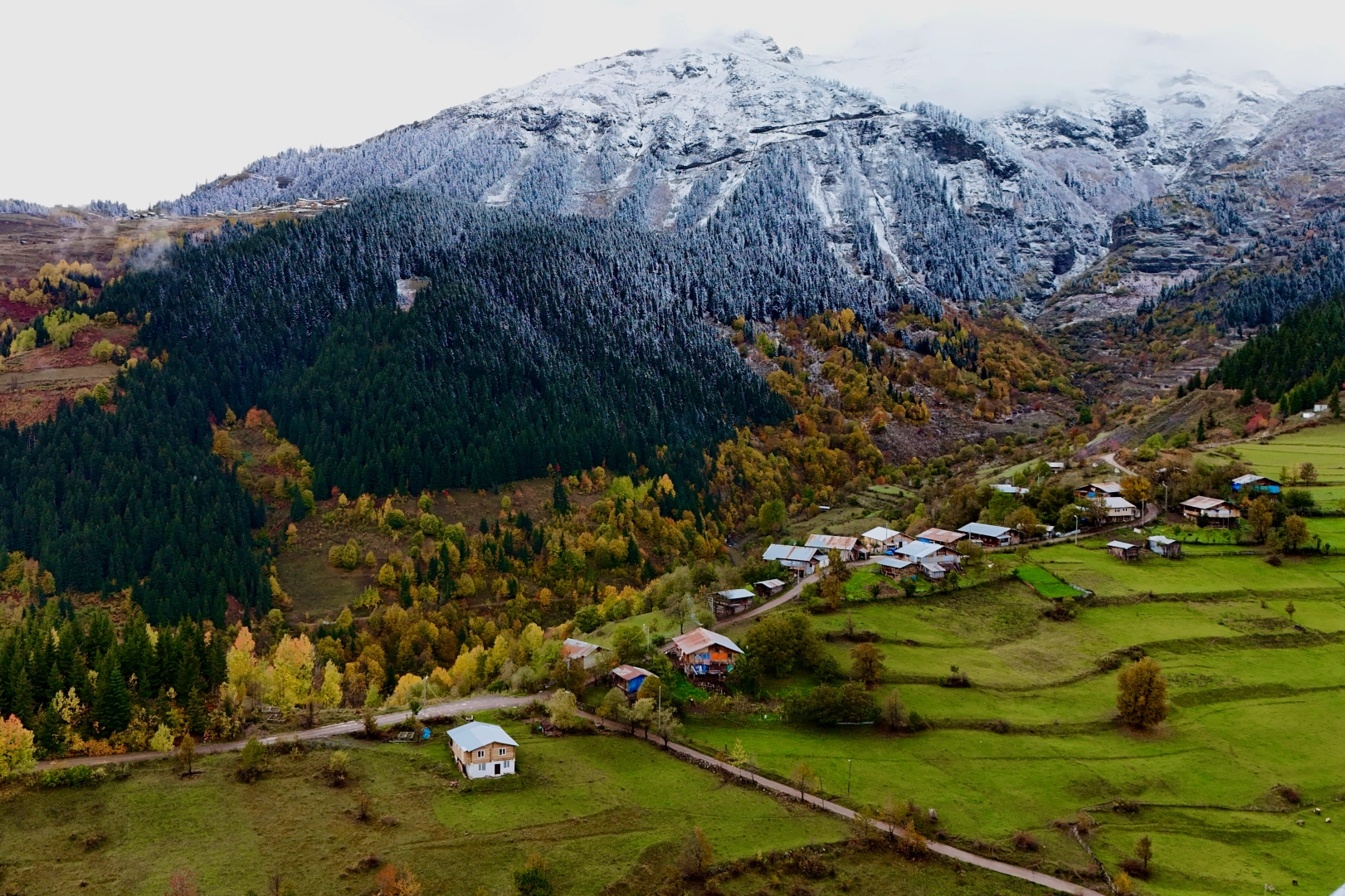 Kocaeli’nde yaşayan Arif Temiz, köyü olan Yağlı köyüne gelerek, sonbahar manzaralarını drone ile havadan görüntülerken, kar yağışıyla birlikte sonbaharın muhteşem görüntüleri yağlı tablo resimleri aratmadı.