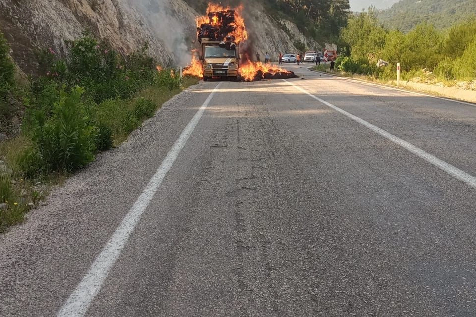 Olay, Feke-Kozan Karayolu Suluhan mevkiinde meydana geldi. Alınan bilgiye göre, A.A. idaresindeki 01 AYJ 072 ticari araç, ilk belirlemelere göre balatalardan alev alarak yanmaya başladı.