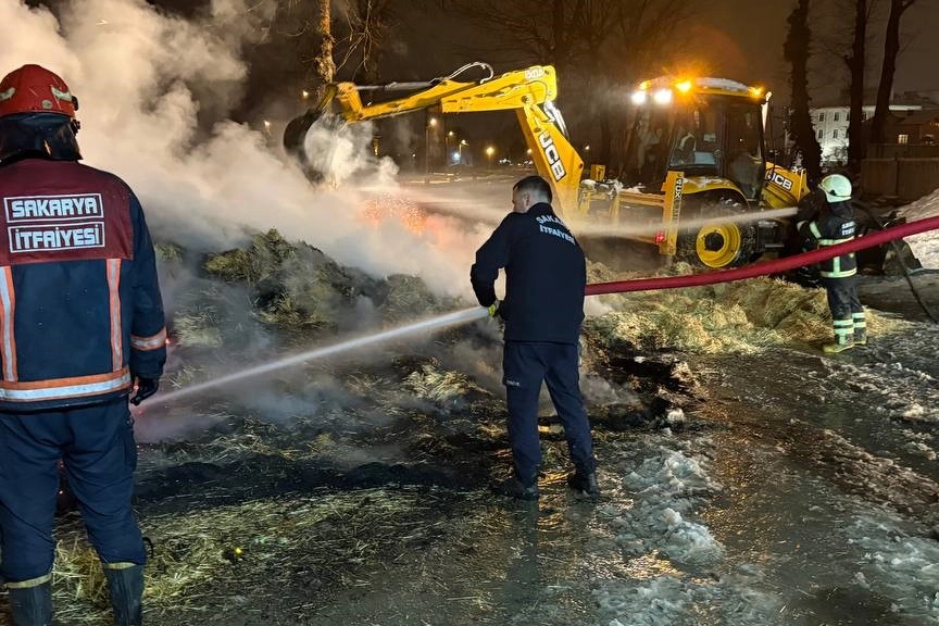 Olay, Yenimahalle Mezbahane önünde meydana geldi. 54 K 1559 plakalı park halindeki kamyonun kasasındaki samanlar henüz belirlenemeyen sebeple alev aldı.