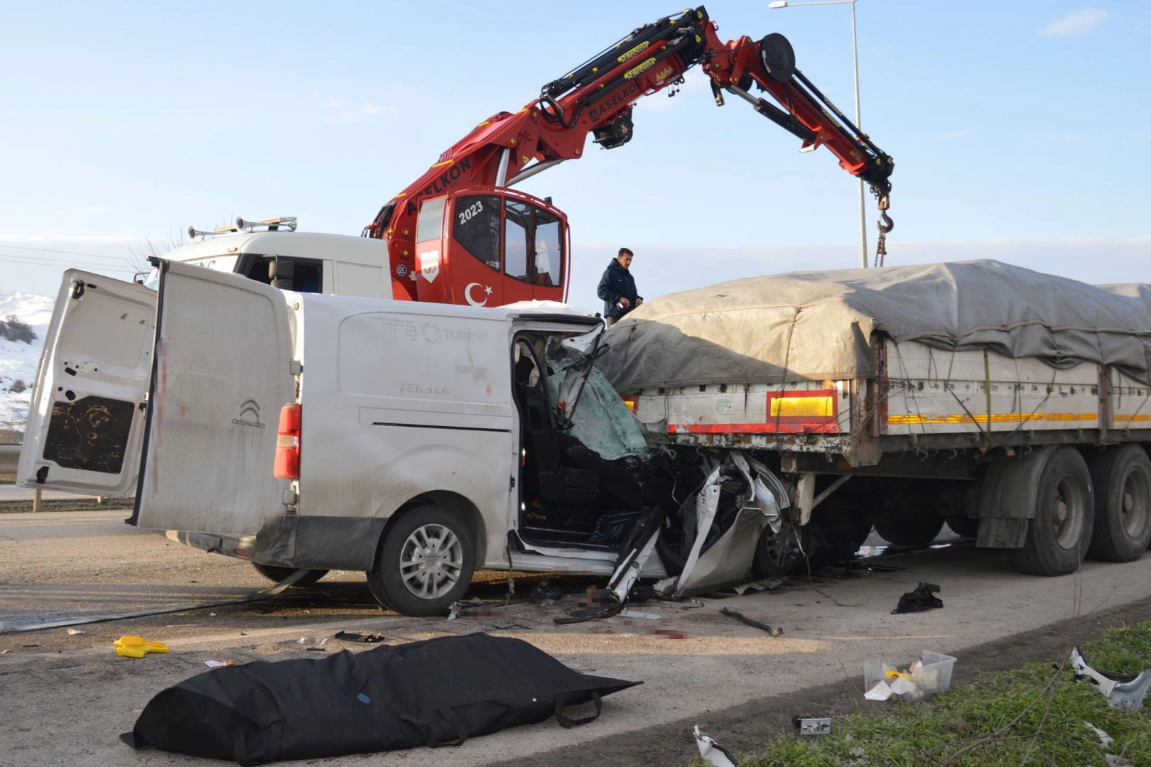 Kaza, sabah saatlerinde Samsun-Ankara kara yolunun Yenice mevkisinde meydana geldi. Edinilen bilgiye göre, Ankara istikametine seyir halinde olan Ali Yıldızoğlu (40) yönetimindeki 55 AJK 271 plakalı hafif ticari araç, aynı yönde ilerleyen Sedat Bozacı'nın kullandığı 55 ACL 606 plakalı tıra arkadan çarptı. Kazada sürücü Ali Yıldızoğlu ile yolcular Avni Kaan Ergüngör (38) ve Ferhat Güven araç içinde sıkıştı. Kazayı gören vatandaşların 112'ye ihbarı üzerine olay yerine jandarma, polis, sağlık ve itfaiye ekipleri sevk edildi.