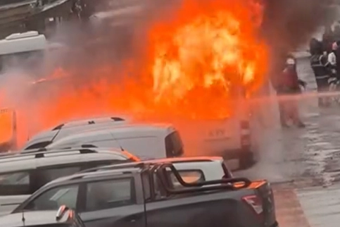 Yalova'nın Altınova ilçesinde faaliyet gösteren bir tersanenin otoparkında bulunan servis minibüsünde çıkan yangın itfaiye ekipleri tarafından söndürüldü.