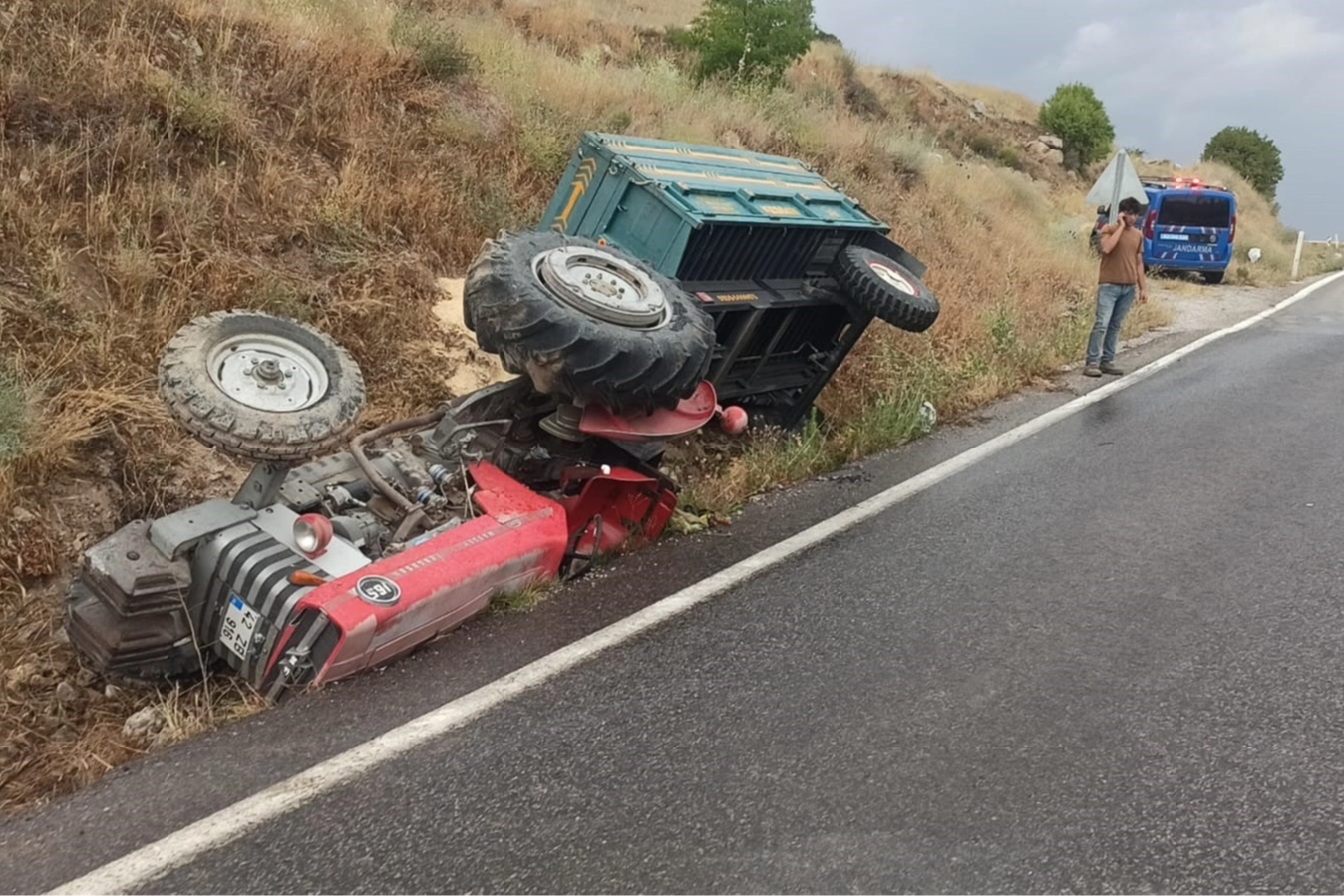 Devrilen traktörün altında kalan sürücü S.Y., olay yerine gelen itfaiye ve sağlık ekipleri tarafından yaralı olarak çıkartıldı.