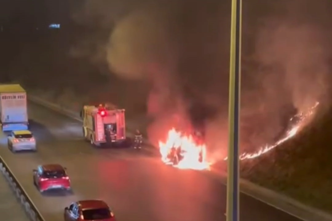 Sürücünün inmesiyle araç alev aldı. Vatandaşların ihbarı üzerine olay yerine itfaiye, sağlık ve polis ekipleri sevk edildi. Kısa sürede olay yerine gelen itfaiye ekipleri, alev alev yanan aracı söndürdü. Araçtan geriye iskeleti kaldı. Yangın sebebiyle uzun araç kuyrukları oluşurken polis olayla ilgili inceleme başlattı.