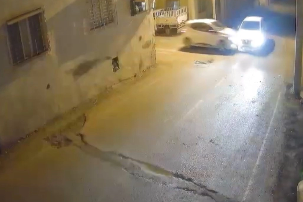 Hatay’ın İskenderun ilçesinde iki aracın çarpışması sonucu meydana gelen trafik kazası güvenlik kamerasına yansıdı.