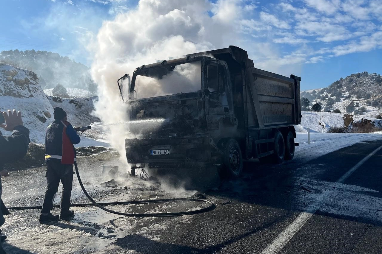 Edinilen bilgilere göre olay, Yozgat’ın Aydıncık ilçesinde meydana geldi. R.Ç. idaresindeki 20 EB 618 plakalı kamyondan dumanlar yükseldi. Aracından dumanların yükseldiğini gören sürücü, yol kenarında durdu. İhbar üzerine olay yerine itfaiye ekipleri sevk edildi. Kamyonu saran alevlere müdahale eden itfaiye ekipleri, yangını söndürdü. Yangında kamyon tamamen yanarak kullanılamaz hale geldi. Olayla ilgili inceleme başlatıldı.