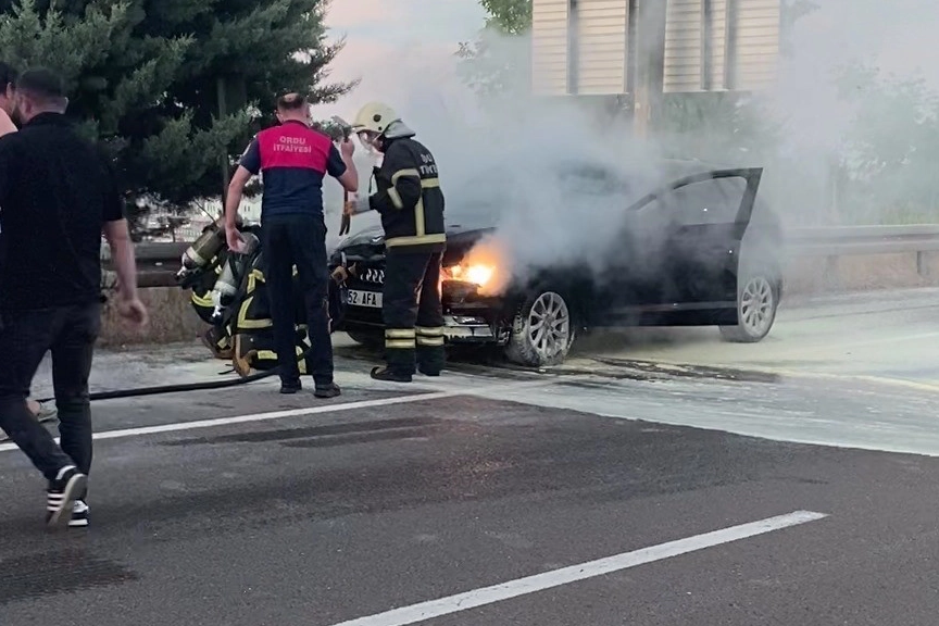 Ordu’nun Ünye ilçesinde seyir halindeyken motor kısmından alev alan otomobil, sürücünün dikkati ve itfaiyenin hızlı müdahalesiyle büyümeden söndürüldü.