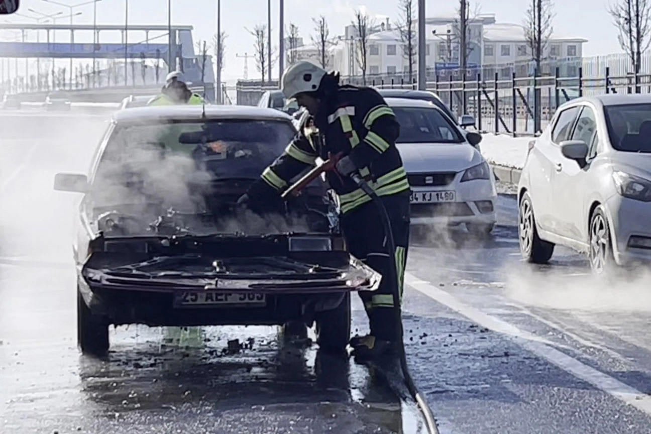 Yol ortasında yanan otomobil itfaiye ekiplerince söndürüldü. Erzurum - Çat kara yolu Şehir Hastanesi kavşağında meydana gelen olayda, kent merkezine seyir halindeki özel otomobilden bir anda dumanlar yükselmeye başladı. Aracını yol ortasında durdurarak inen sürücü durumu hemen itfaiye ekiplerine bildirdi. Kısa sürede olay yerine gelen Erzurum Büyükşehir Belediyesi ekiplerinin müdahalesiyle yangın söndürüldü.