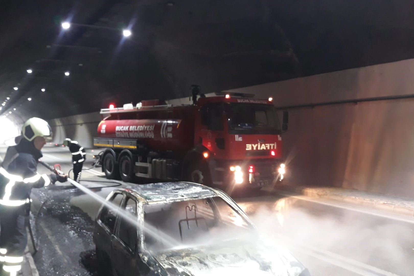 Yangın, saat 08.00 sıralarında Burdur'un Bucak ilçesi Antalya-Isparta karayolu Kargı Tüneli içerisinde çıktı. Edinilen bilgilere göre, seyir halinde olan 32 ACT 242 plakalı Citroen marka otomobil tünel içerisinde bir anda alev aldı.