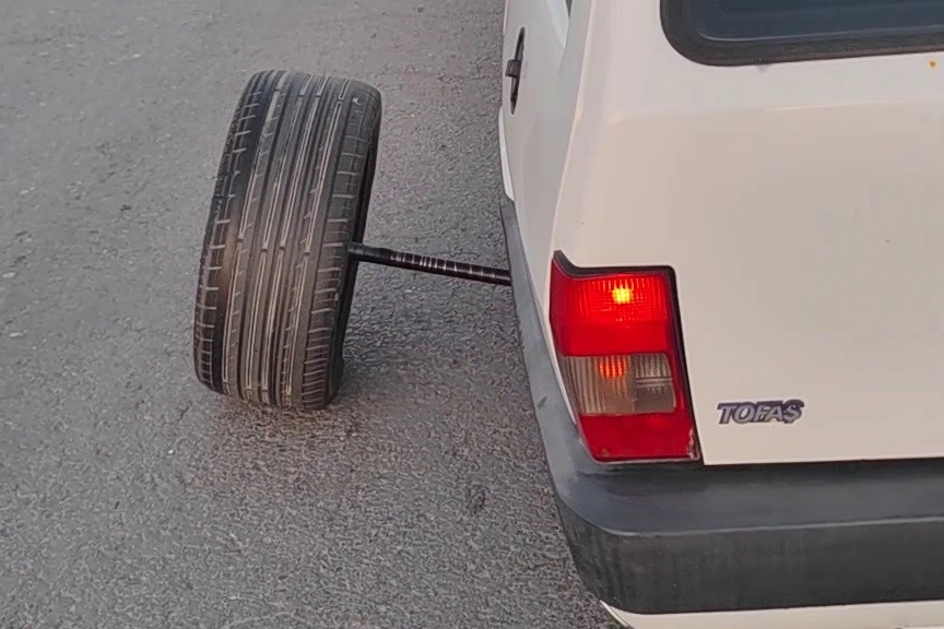 Sivas’ta yaşayan Arif Sancak (36), Tofaş marka otomobili ile seyir halindeyken aracının aks kısmının kopmasıyla birlikte büyük bir tehlike yaşadı. Arif Sancak, Tofaş marka otomobili ile yolda hareket halinde olduğu esnada aracında aniden bir boşluk hissi olduğunu fark etti. Dikiz aynasından baktığından lastiğin arabadan ayrılmış bir şeklide olduğunu gören Sancak, bunun üzerine aracını yolun kenarına çekti. Otomobilinden indiğinde lastiğin araçtan tamamen ayrıldığını görüp, hayatının şokunu yaşadı. Daha sonrasında aracını detaylı bir şekilde kontrol ederek aracın aks kısmının koptuğunu tespit etti. Olay anını cep telefonu kamerasıyla kaydeden sürücü, görüntüleri sosyal medya hesabında paylaştı. Kısa sürede yayılan video, birçok sosyal medya kullanıcısı tarafından izlendi.