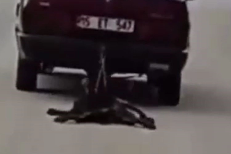 Burdur'da sokak köpeği bir otomobilin arkasına bağlanarak metrelerce sürüklendi.