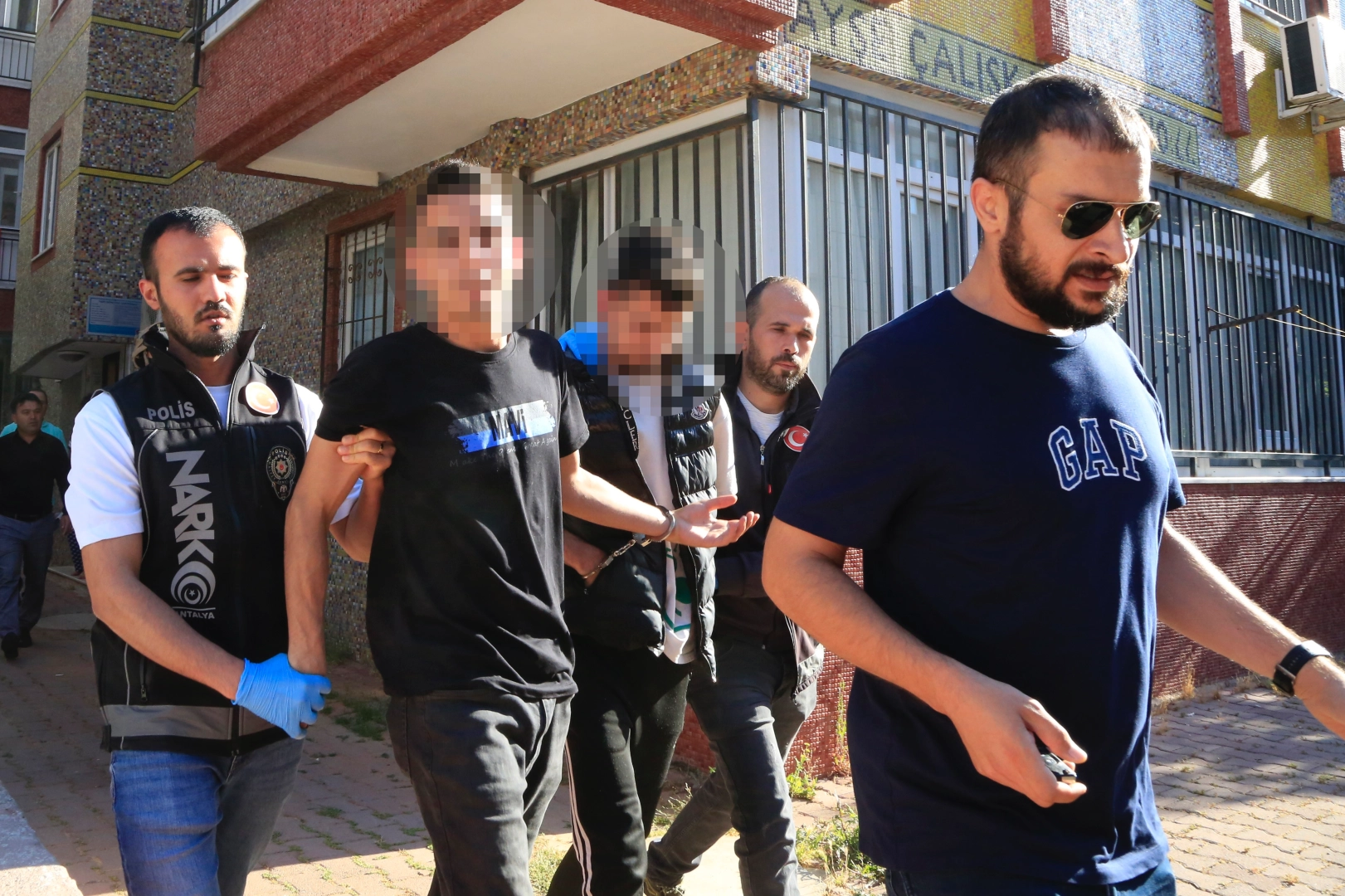 25 adrese 450 personelle baskın 2 aylık teknik ve fiziki takip sonucunda Alanya ve Manavgat merkezli olmak üzere Kepez, Muratpaşa ve Konyaaltı’nda belirlenen 25 adrese 450 personelin katılımı ile operasyon yapıldı. Özel harekat polisleri ve helikopter desteği ile Kepez ilçesi Gündoğdu Mahallesi 2475 Sokak üzerinde bulunan bir apartmana düzenlenen baskında narkotik köpeği Maya tarafından arama yapıldı. M.S.O. ve P.O. isimli kardeşler düzenlenen baskın sonucu gözaltına alınarak ifadeleri alınmak üzere Antalya Emniyet Müdürlüğüne götürüldü. Gözaltına alınan şahısların emniyete götürülüşü sırasında anneler, "Anneciğim bay bay" diyerek arkalarından el salladı.