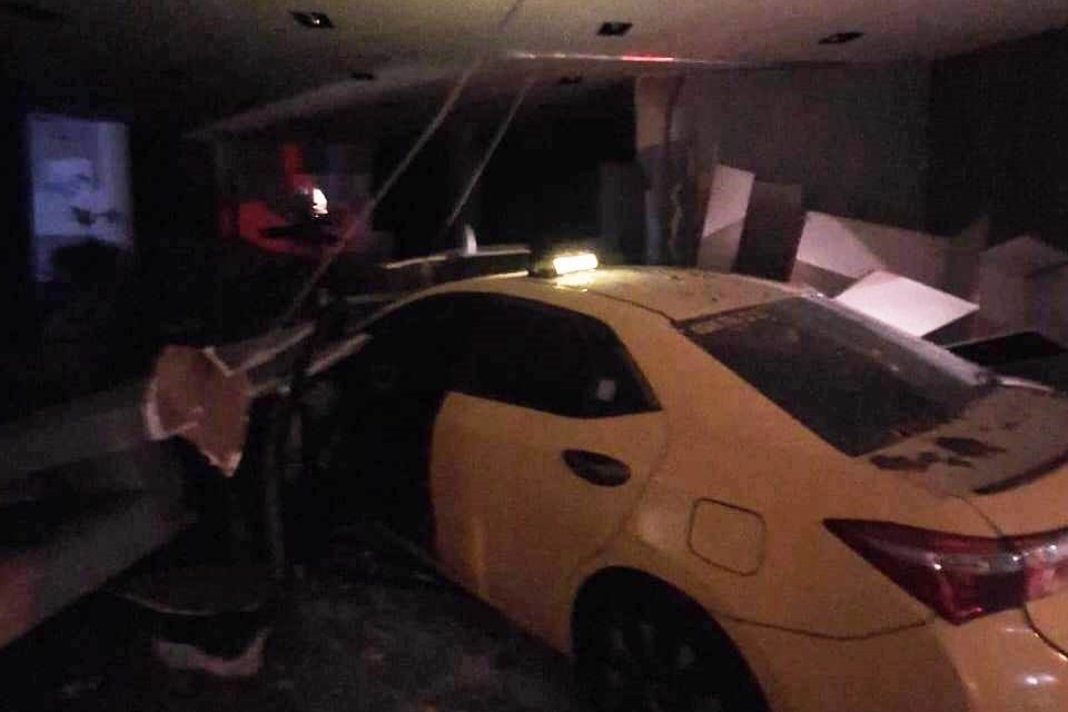 Mersin'de kontrolden çıkan ticari taksi, park halindeki bir motosiklete çarpıp kaldırıma çıkarak mobilya mağazasına daldı.