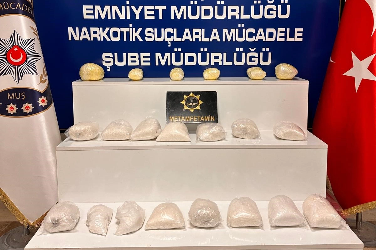 13 Şubat 2025 tarihinde Muş’ta yapılan yol uygulaması sırasında durdurulan bir araçta arama yapıldı. Ekipler, araçtaki eşyalar içerisine gizlenmiş toplam 17 kilo 737 gram ağırlığında 22 parça metamfetamin ele geçirdi.