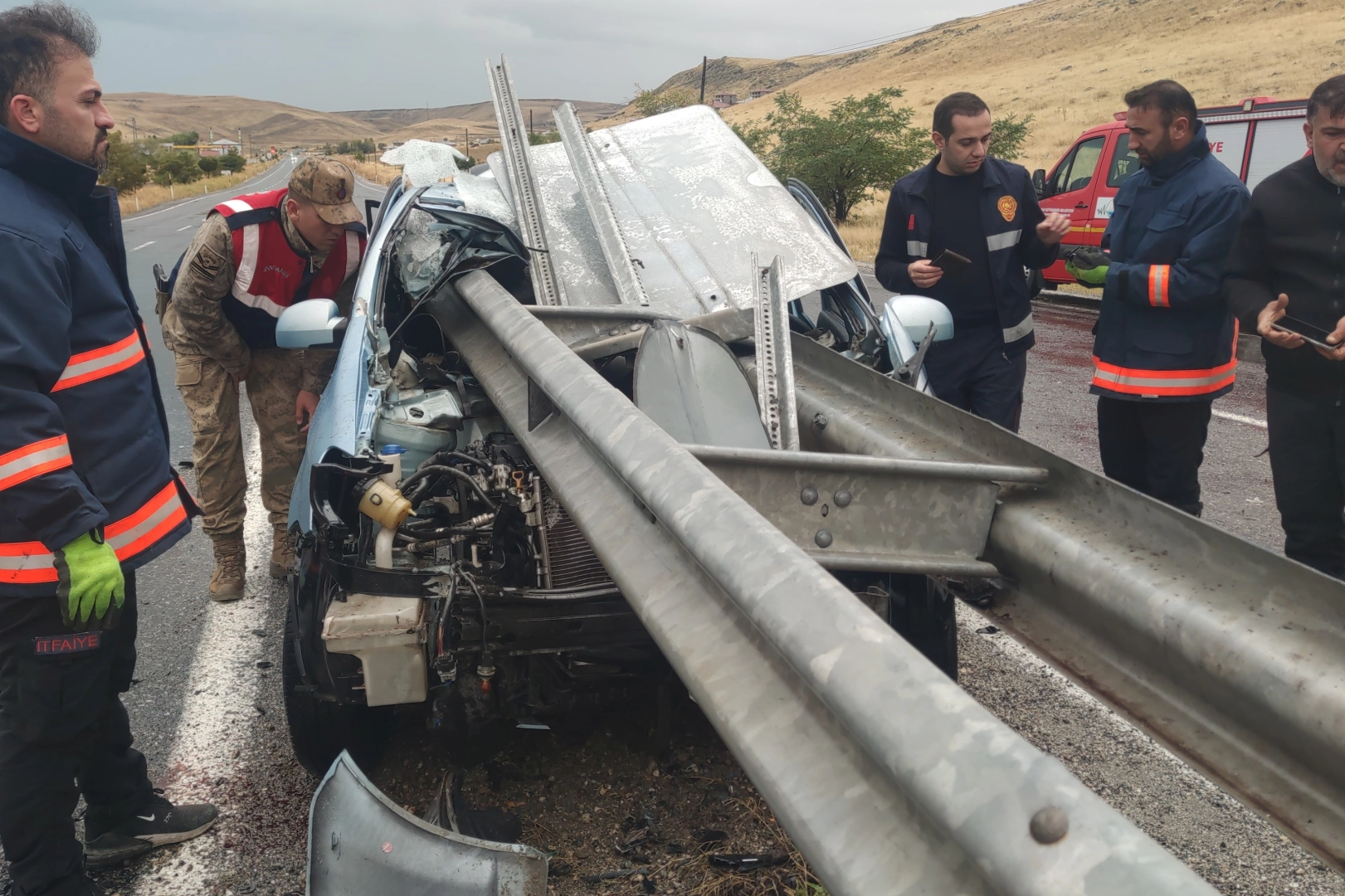 Bariyerlerin otomobilin ön camından girip bagaja kadar uzandığı kazada sürücü yaralandı.