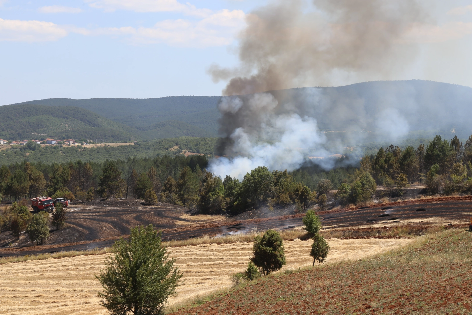 Olay, Taşköprü ilçesi Örhenli köyünde meydana geldi. Edinilen bilgiye göre, balya makinesinde çıkan yangın tarlaya sıçradı.