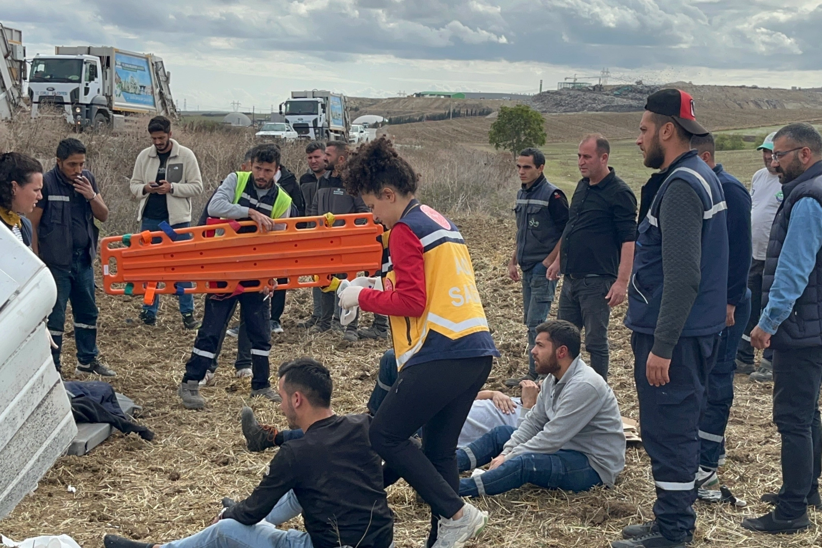 Çöp kamyonunun metrelerce yüksekten şarampole çakılması sonucu kabini ters döndü. Can pazarının yaşandığı kazada olay yerine çok sayıda ambulans ekibi sevk edildi. Sürücü Şerif E. ve araçta bulunan Ahmet İ. ve Gökberk H. yaralandı. Yaralılar, olay yerine gelen sağlık ekiplerinin ilk müdahalesinin ardından belediye görevlilerinin de yardımıyla patikadan çıkarılarak ambulansa getirildi. Yaralı 3 belediye işçisi, ambulanslarla hastanelere sevk edildi. Tedavi altına alınan 3 yaralının hayati tehlikesinin olmadığı öğrenildi. Kazayla ilgili jandarma tarafından inceleme başlatıldı.