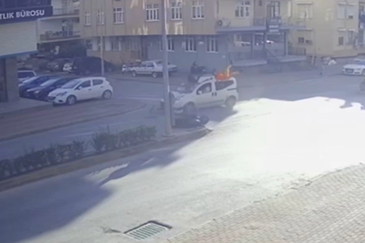Kaza anları güvenlik kamerasına an be an yansıdı. Kaza, Manavgat ilçesi Bahçelievler Mahallesi'nde yaşandı. 5036 sokaktan gelip 5068 sokak istikametine gitmekte olan Serkan Haf’ın kullandığı 07 BSB 806 plakalı motosiklet Çetin Emeç Caddesinde Sorgun Bulvarı istikametine seyir halindeki Ferhat Oruç’un kullandığı 07 AFV 495 plakalı hafif ticari araca çarptı. Güvenlik kamerasına saniye saniyesine yansıyan kazanın motosiklet sürücüsünün dikkatsiz bir şekilde yola çıkması sonucunda meydana geldiği gözlenirken çarpmanın şiddetiyle havaya fırlayan ve asfalta düşen motosiklet sürücüsü Serkan Haf ve motosiklette yolcu olarak bulunan Abdullah Haf yaralandı.