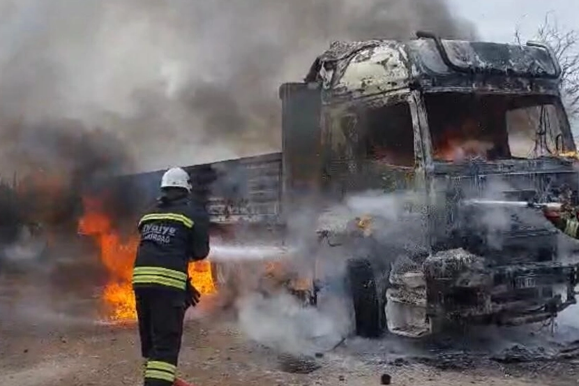 Tekirdağ'ın Ergene ilçesinde park halindeyken alev alan tır yanarak kullanılamaz hale geldi.