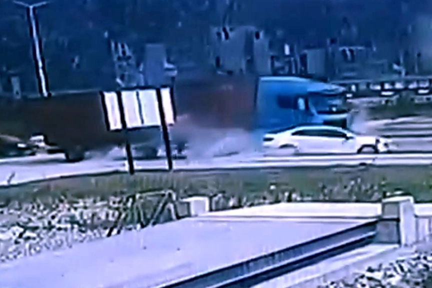 Aydın’ın Söke ilçesi Organize Sanayi Bölgesi (OSB) hemzemin geçidi çıkışında meydana gelen trafik kazası, güvenlik kameralarına yansıdı.