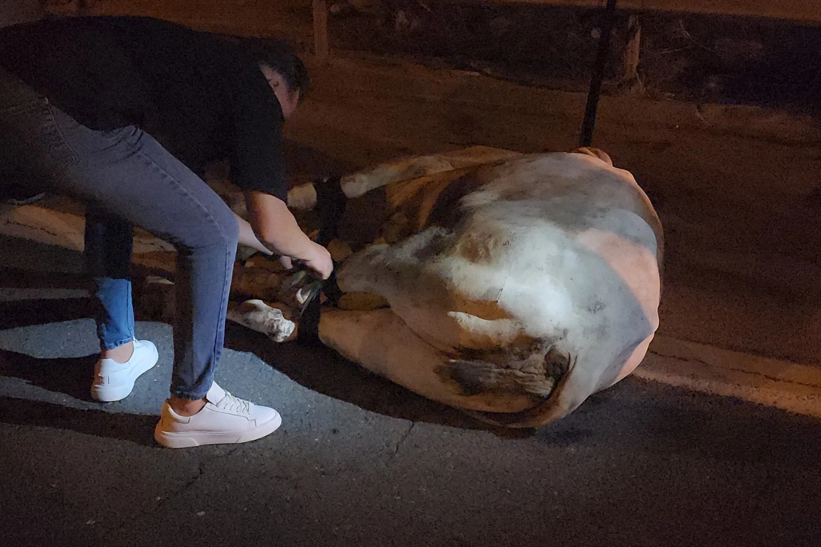 Uzun kuyruğa neden olan angus, ekipler tarafından iğneyle vurularak yakalandı.