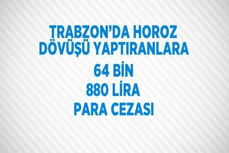 Trabzon’da horoz dövüşü yaptıran 16 şahsa toplam 64 bin 880 lira para cezası kesildi.