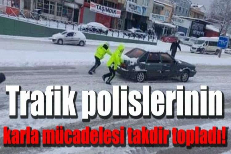 Gece gündüz Bursa’nın ana yolları, caddeleri ve bazı sokaklarında nöbet tutan ekipler kapanan yollarda mahsur kalan sürücülerin yardımına koşarken, kar küreme ve tuzlama araçlarının koordinesinde büyük bir rol alıyor. Çoğunluğu dikkatsiz sürücü ve kış lastiği olmayan araçların sebep olduğu aksaklıklara müdahale eden ekipler; trafiğin açılması için ise canla başla çalışıyor. Yolda kalan araçları ittiren ve sürücülere yardımcı olan ekipler vatandaşlar tarafından büyük takdir topluyor.