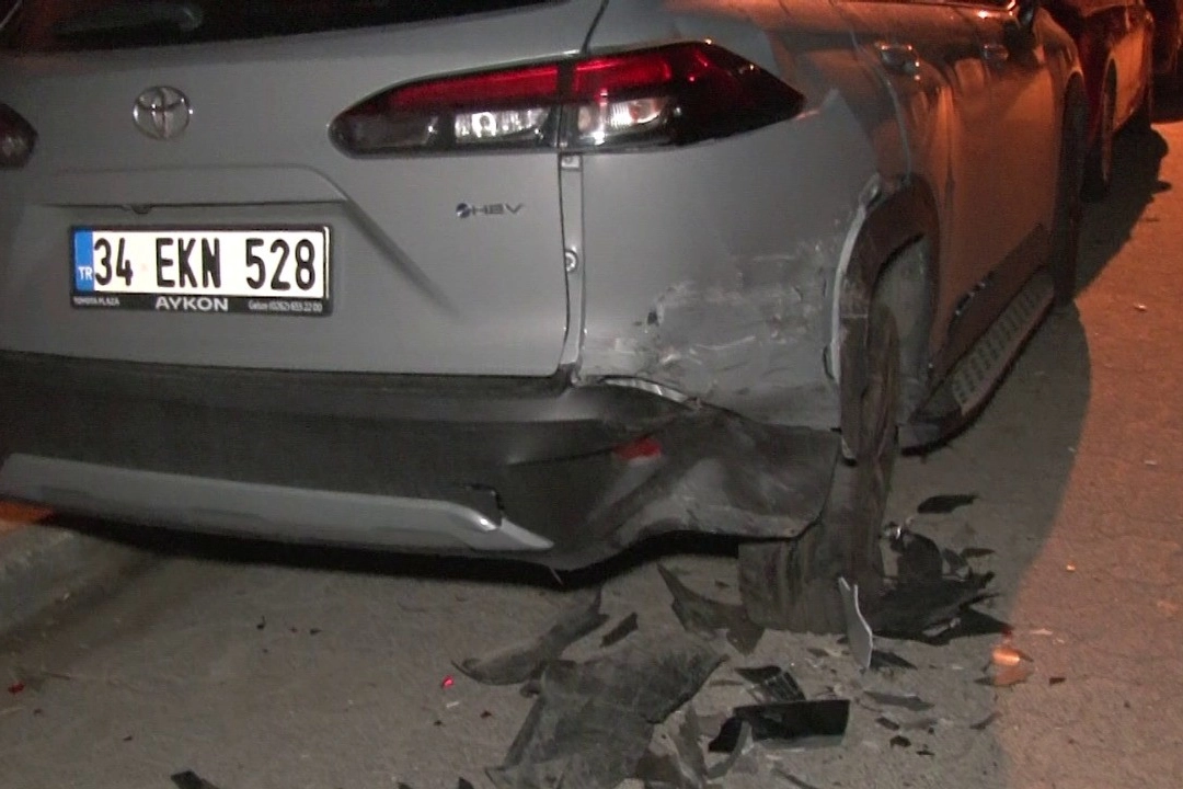 Ataşehir'de bir sürücü sokaktaki araçlara vurarak kaçtı. O anlar cep telefonu kamerasına yansıdı.