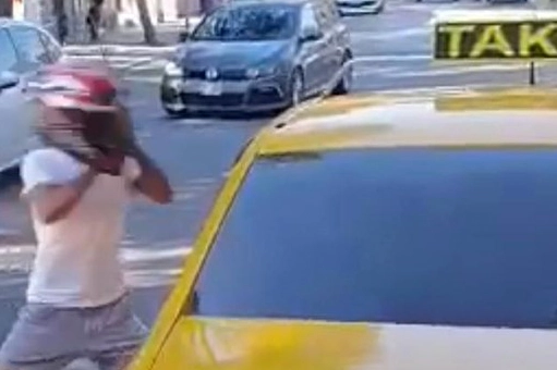 İzmir’in Bornova ilçesinde motosikletli, trafikte tartıştığı taksi şoförüne kaskla saldırdı.