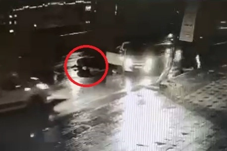 Yağmur sebebiyle düz yolda kayan bir otomobil kontrolden çıkarak yol kenarındaki beton elektrik direğine çaptı. Ortadan ikiye yamulan otomobilin sürücüsü çarpmanın etkisiyle otomobilin kapısından fırlayıp trafiğin aktığı yolun ortasına yuvarlandı.