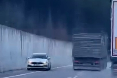 O anlar arkadan gelen başka bir aracın kamerasına yansıdı. Trafikte korku dolu anlara neden olan kamyon sürücüsü tepki çekti.